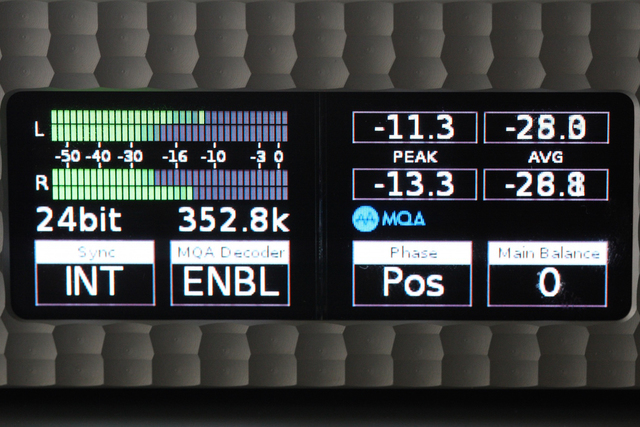 Brooklyn側は、MQA 352.8kHz/24bitをフルスペックでデコード。Brooklynの表示にも352.8kHz/24bitと表示されている