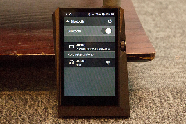 AK380とAI-503がBluetooth接続されていることが確認できる