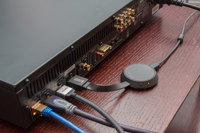 HDMI入力端子にGoogle Chromecast ULTRAを接続したところ。例えばNetflixの4KコンテンツもこれでUDP-203から楽しめる