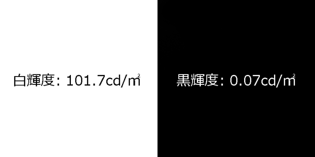最大輝度:570.5cd/m2(6970K/ x:0.3044 y:0.3311)、コントラスト比:1453:1(白輝度101.7 cd/m2/黒輝度0.07 cd/m2)