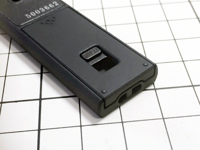 電池蓋。開けるのにドライバー等は不要なので、出先でもさっと電池交換できる。ストラップホールも用意