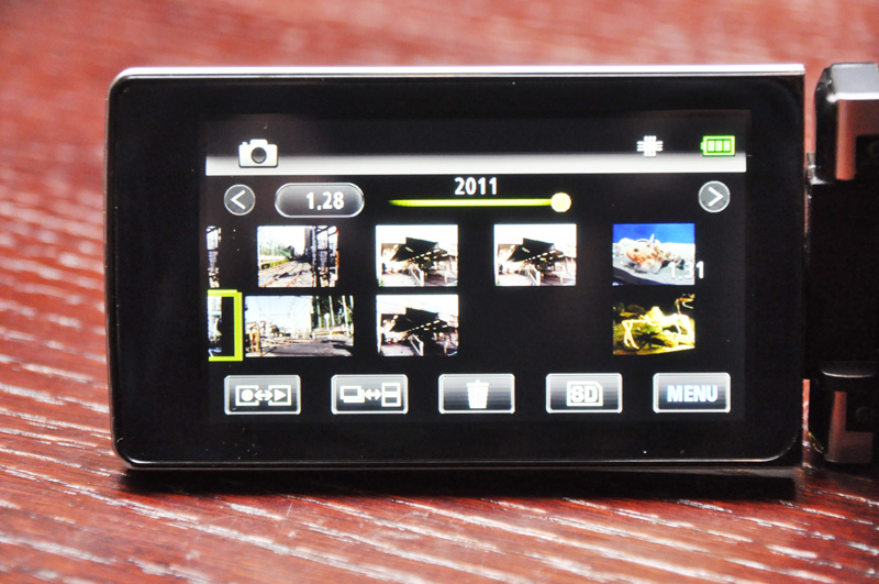 液晶モニターはタッチオペレーションに対応。撮影した素材はサムネール一覧から選択できる