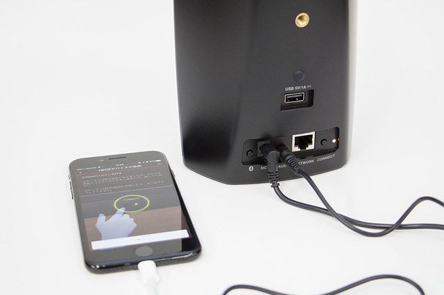 無線接続の場合、本体設定のため3.5mmステレオミニケーブルを使用する