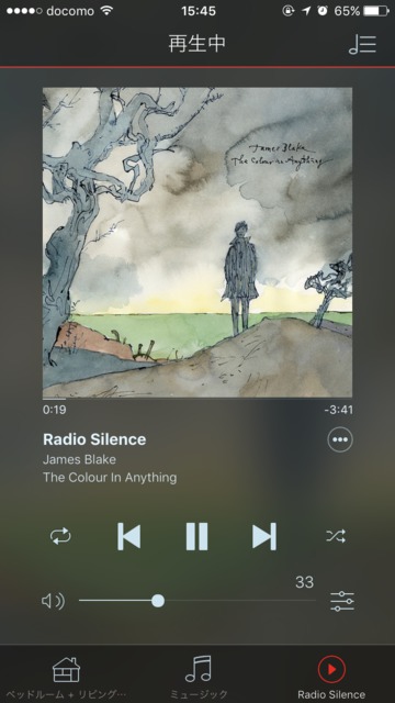 こちらは再生中の画面。USBメモリーとDLNAの楽曲は同じプレイリストに追加可能だ