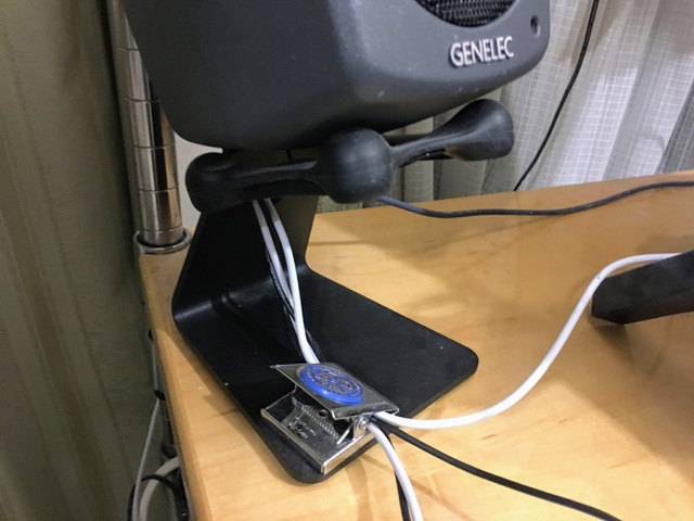 Genelecの小型スピーカーにオプションで用意されている、高さを上げてさらに角度も可変調整できるスタンド