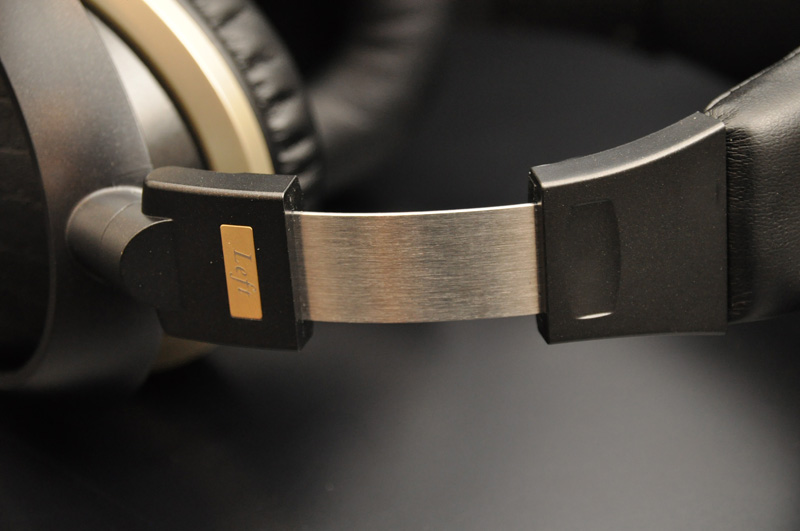 長さ調整が可能なヒンジ部にはメタル素材を採用。左右のハウジングが識別しやすいよう、メタルプレートにLEFT/RIGHTを表記している