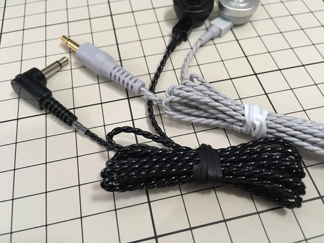 シンプルな編み上げケーブル。プラグもストレート型とL型のバリエーションがあり、それも色とは別に選べる。ストレート型は金メッキでL型はニッケルメッキ