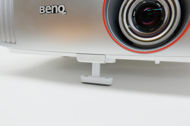 高さ調整はスイッチ式の脚部で行える。縦方向の台形補正機能も搭載
