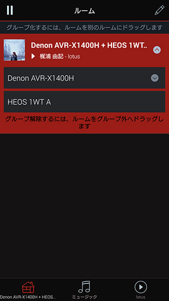 上画像のように、AVR-X1400Hとネットワーク上のHEOS対応製品を同期して再生することができる