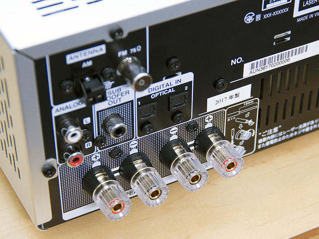 RCD-M41の背面端子部。光デジタル入力は最大192kHz/24bitのPCM入力に対応。ポータブルオーディオプレーヤーやテレビの音声入力が可能だ