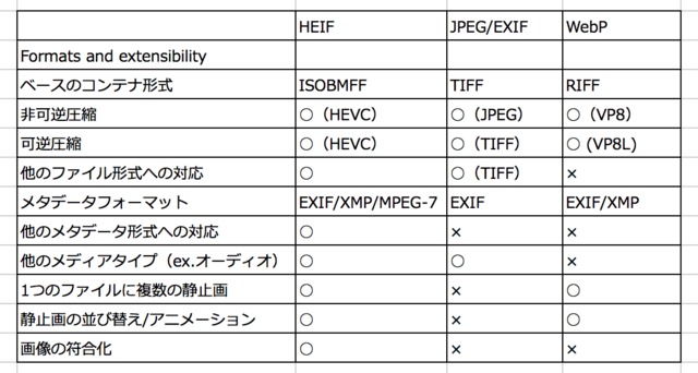 HEIFと他の画像フォーマットとの比較