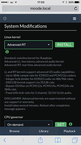 「Advanced-LL」と「Advanced-RT」のどちらを選択しても、I2Sで384kHz/32bitを扱うためのパッチが適用されたカーネル/ドライバを利用できる