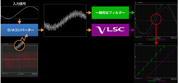 D/A変換時のパルスノイズを低減する独自のフィルター回路「VLSC」を搭載