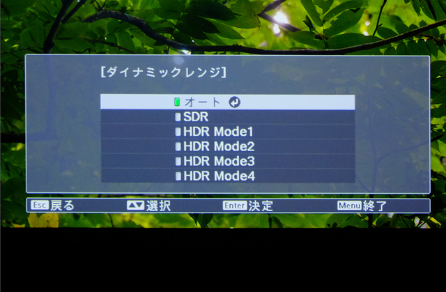 「ダイナミックレンジ」から選べるSDR/HDRモード