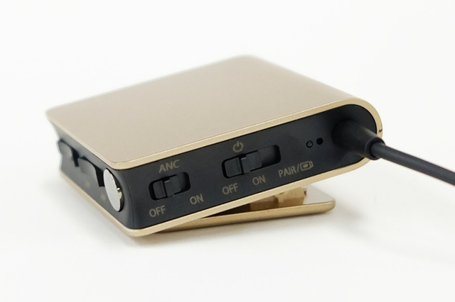 レシーバー上部。電源スイッチと共に、ノイズキャンセリング機能のオン/オフを切り替えられるスイッチを装備する