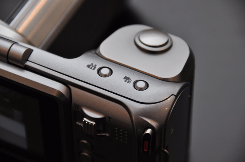 ハイスピード撮影ボタン(左)と連写ボタン(右)を本体トップに配置