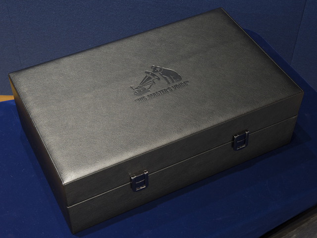 専用ヘッドホン「HA-WM90」はビクターのトレードマークであるニッパー犬が刻印された重厚なケースに収められている