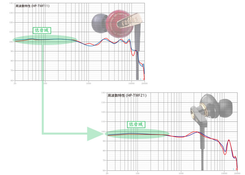 初号機「HP-TWF11」と弐号機「HP-TWF21」の周波数特性の違い