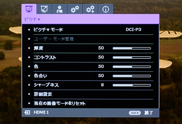 ピクチャーモードにはデフォルトで「DCI-P3」設定が用意されている