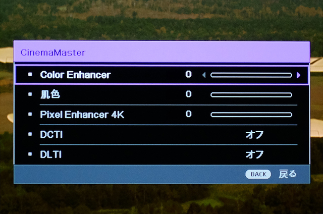 BenQホームシアタープロジェクターの特徴である「CinemaMaster」も搭載し、画質の追い込みが可能