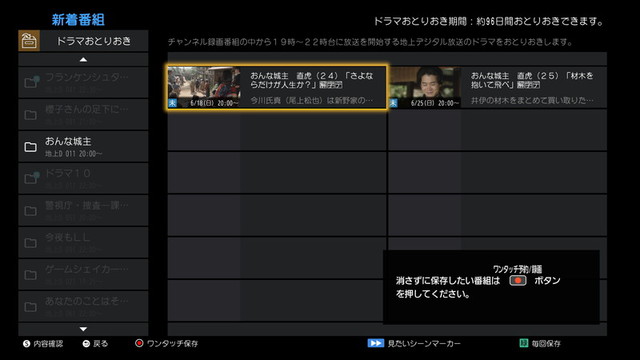 ドラマのみ「ドラマとりおき」として番組名でフォルダを作成