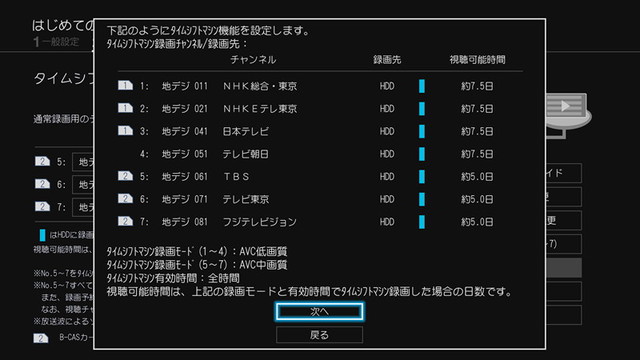 東芝はチューナー1〜4、チューナー5〜7で設定