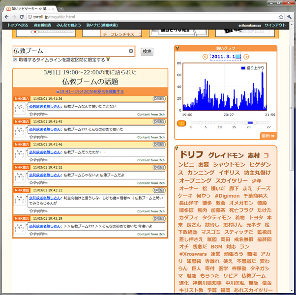 ソーシャルメディアのパワーを活かした新しいテレビ体験 − 「TVRoll.jp」を折原一也が試す