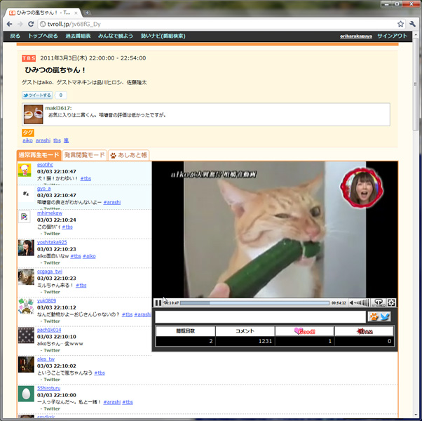 ソーシャルメディアのパワーを活かした新しいテレビ体験 − 「TVRoll.jp」を折原一也が試す