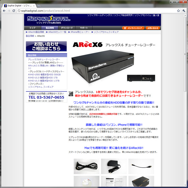 ソフィアデジタルの「ARecX6」。本体は同社オンラインストアでも34,800円(税込)で販売されている。