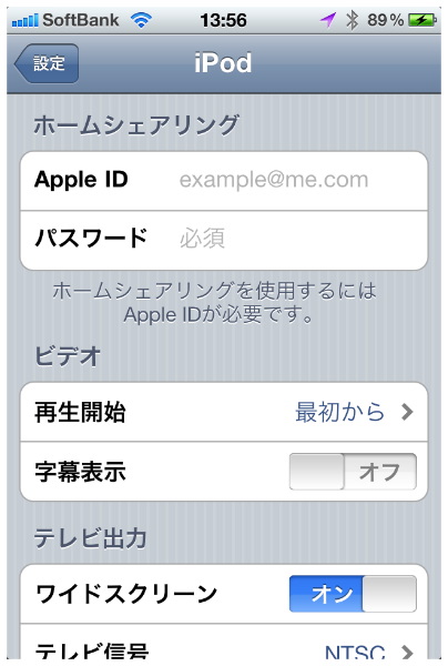 iOS 4.3の「設定」→「iPod」画面には、iTunes ホームシェアリングのための設定欄が追加された(画面はiPhone)