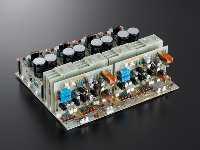 完全バランス構成を採用するC-900uは、新LECUA1000を並列に4基搭載し、理想的なバランス伝送を実現。左右のバランス調節や、バイアンプ出力モードでのレベル調節なども、LECUAの制御で行なう