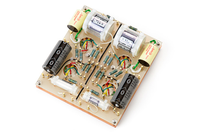 ラインアンプ部はモジュール化し、その上にデカップリングコンデンサーを左右独立で配置してシグナルループを最小化している