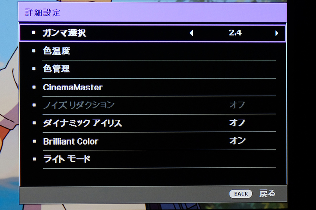 ガンマは「2.4」とし、「ブリリアントカラー」は「オン」に