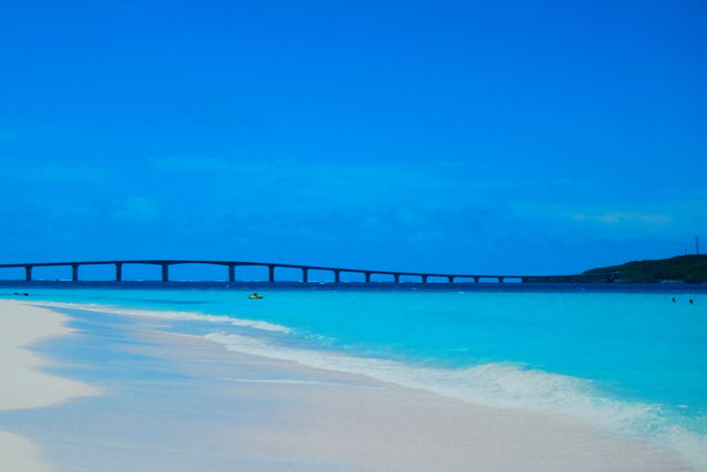左がデフォルトで、右が調整後。明る過ぎるように見えた海や空の青が落ち着いた