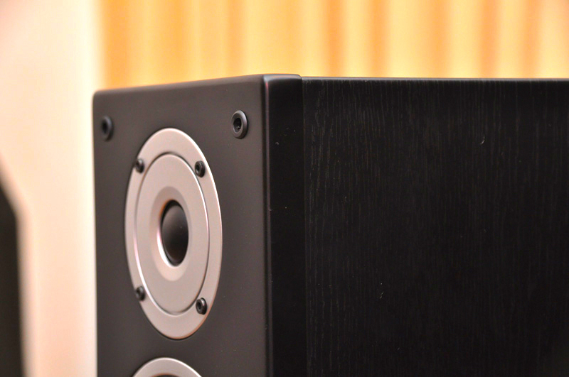 キャビネットは木目の美しさを残したブラックフィニッシュとし、フロントバッフルに別ラッカー仕上げを施している