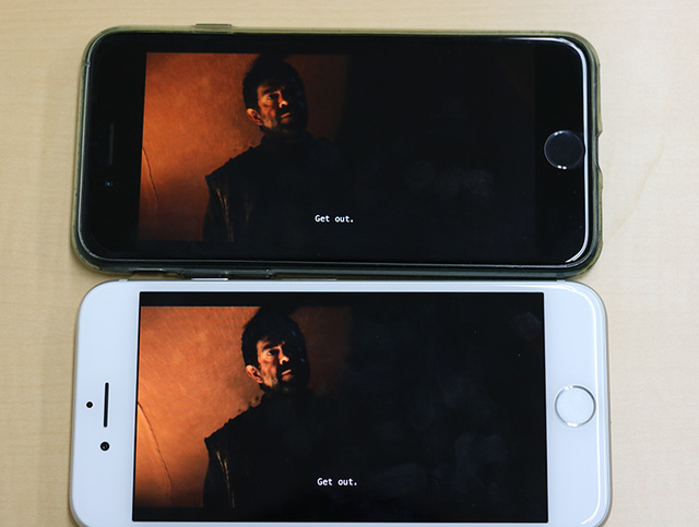 上がiPhone 7のSDR映像、下がiPhone 8のHDR映像。iPhone 8は暗部が沈み込みながら、光が当たっている場所の輝度が高く、ダイナミックレンジが広く立体感のある映像が体験できる