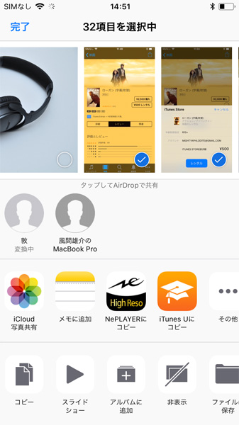 iPhoneで撮影した静止画ファイル30件をAirDropでMacBookに転送するとJPEG変換のプロセスが発生するが、数秒ほどで転送が完了した