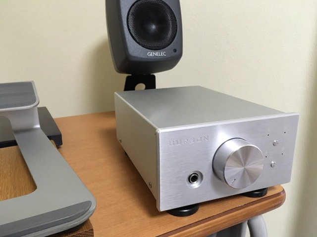 ヘッドホンアンプ、Burson Audio Soloist SLを設置。スピーカースタンドの高さのおかげでその手前に置ける