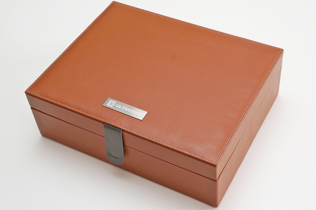 本革張りの専用ケース。革の色味をヘッドバンド、イヤーパッドに合わせ込んでいる。ケースの裏地は滑りにくいようにスウェード加工されている