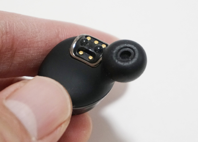 イヤホンの内側には心拍センサー、データ転送/給電用のコネクターが配置されている