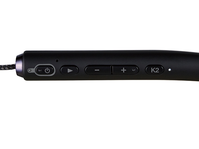ネックバンド部内側に各種操作ボタン類を装備。「K2」ボタンでK2テクノロジーのオンオフも可能