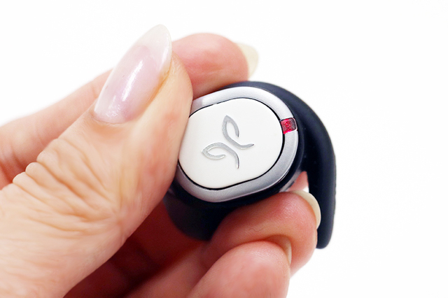 左右それぞれ長押しで電源ON/OFFできる。OFF時は赤く点灯、ONにすると緑に光る