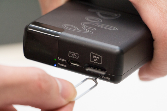 同梱のピンでConfigボタンを5秒ほど長押しすると、P.status LEDが点滅を開始。Wi-Fi設定が可能になる