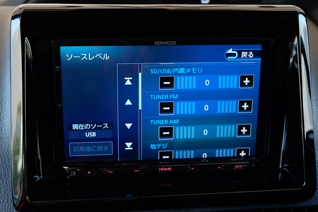 ラジオやBluetoothなど、各ソースの音量レベルを一定に揃える調整も便利
