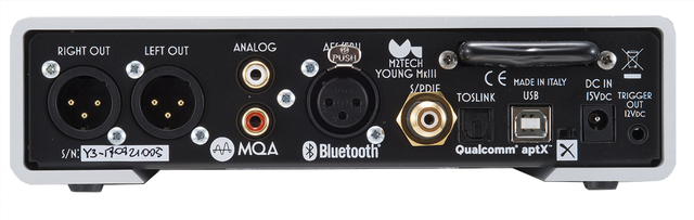 YOUNG MKIIIのリアパネル。aptXを採用したBluetoothの新搭載に加えRCAのアナログ入力を備えるなど、よりプリアンプ的な要素が強くなった