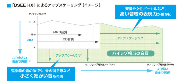 ワイヤレスでもハイレゾ相当のクリアで躍動感あるサウンドを楽しめるとする「DSEE HX」に対応
