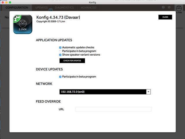 設定ソフト「Konfig」の画面。DSDに対応したファームウェアは現時点でβ版だが、問題なく利用することができる