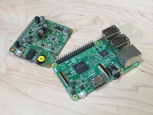 左がDACボード、右がラズパイボード。ラズパイ側にもイヤホン端子がありオーディオ回路があるのだが、その規模と贅沢さの違いは見ての通り