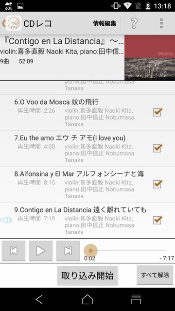 CD情報適用後の取り込み画面。プレビュー再生も可能