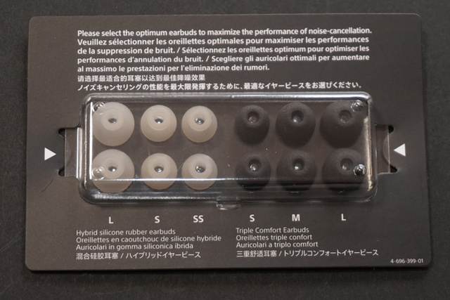 通常のシリコンイヤーピースと、ソニー独自のトリプルコンフォートイヤーピースが付属する